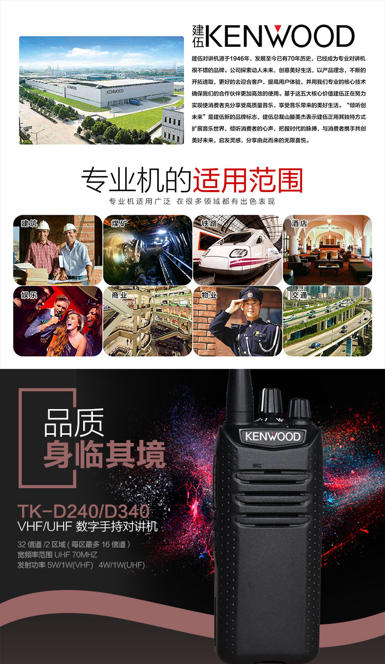 建伍(KENWOOD)TK-D240數(shù)字DMR制式對講機(jī)手臺專業(yè)大功率港口船舶